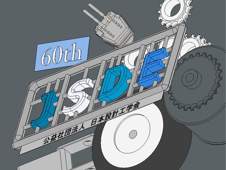 設計工学会の輝かしい創立60 周年を祝し,その歴史と役割を立体的に表現しました.土台の巨大な歯車は,社会を円滑に動かす設計工学の「基盤技術」と,60 年の「積み重ねた歴史」を象徴しています.その上には,私たちの暮らしや産業活動の発展,すなわち「社会そのもの」を構築しました.私たちの生活と産業の全てが,工学の叡智の上に成り立っていることを示し,未来の豊かな社会を築き続けるという使命と誇りを込めています.